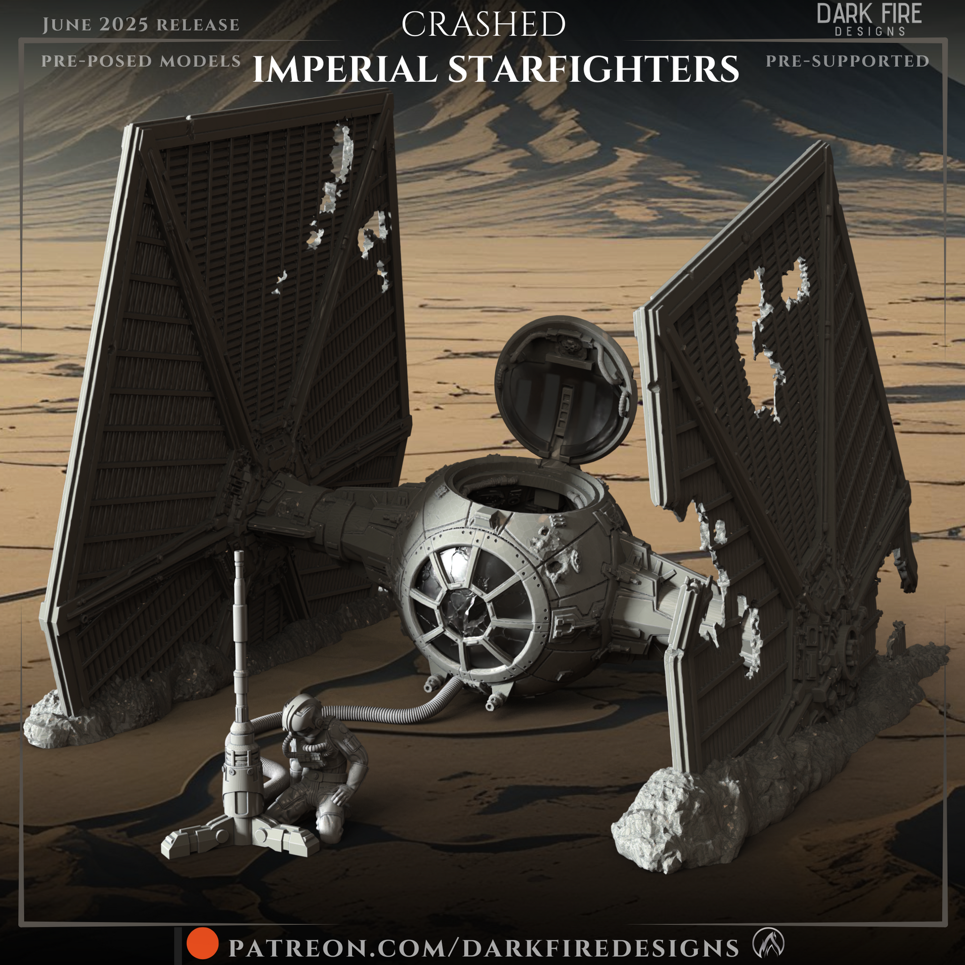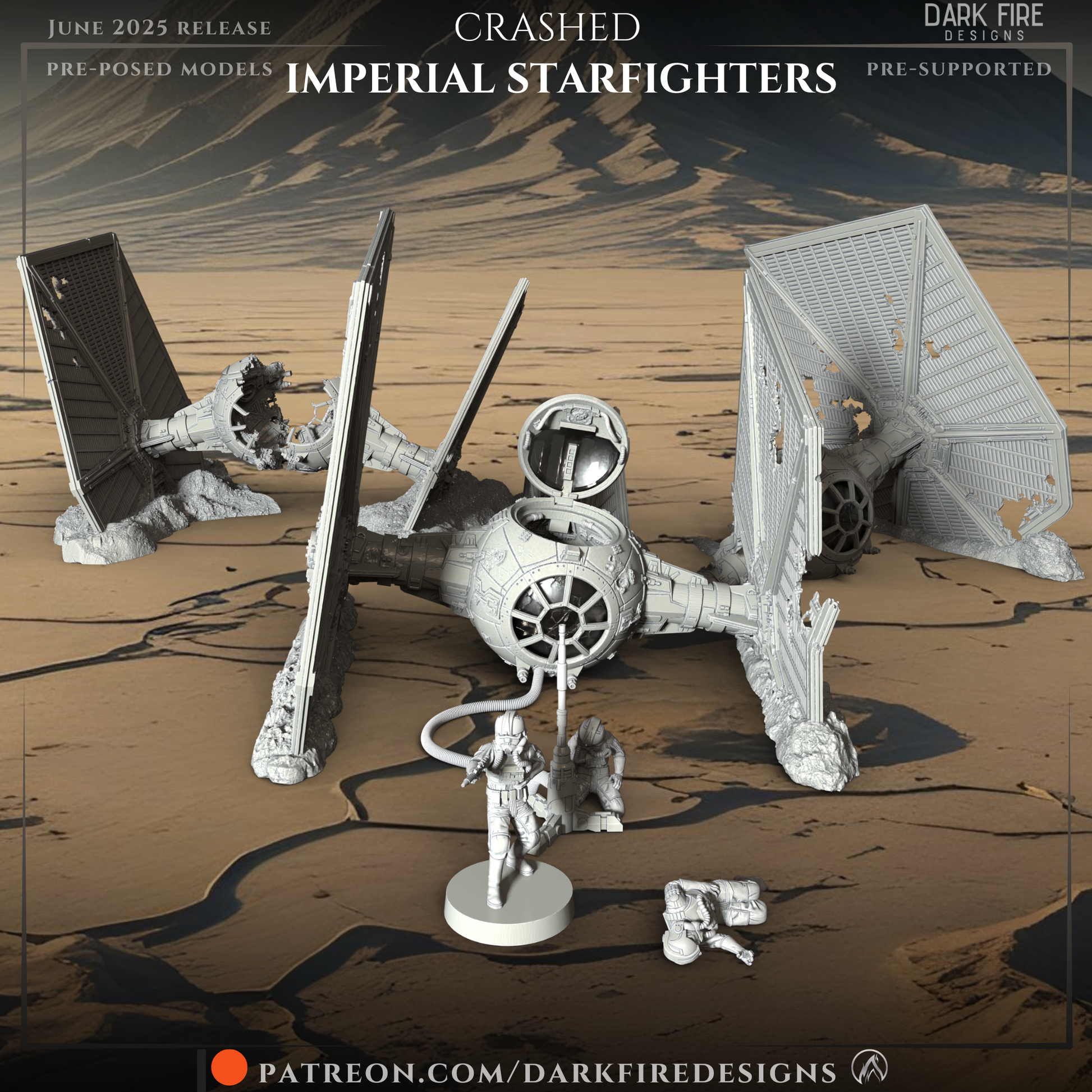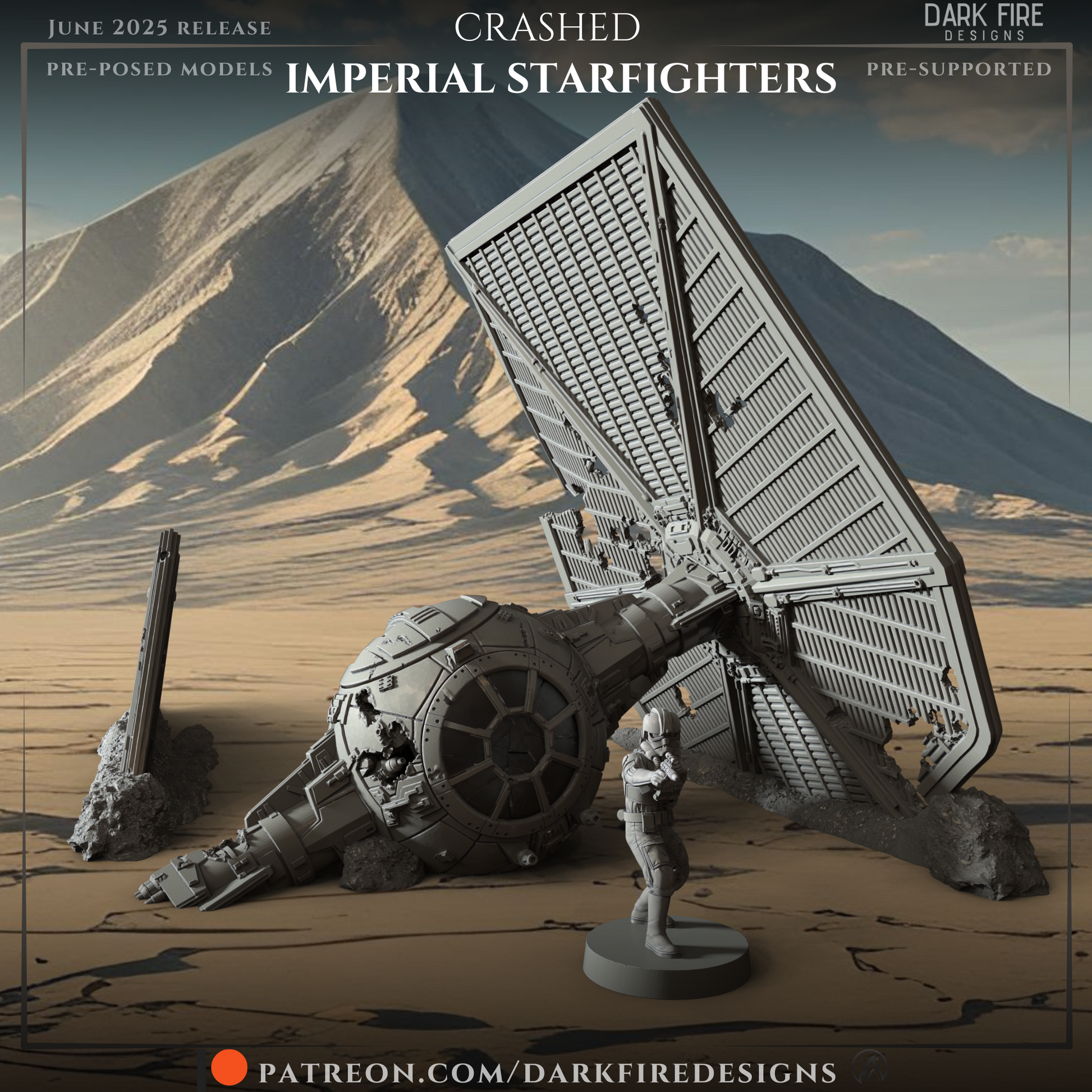 The Imperial Starfighter is the backbone of space and air supremacy, and fought in every battle where it could possibly be used. While quick, nimble and responsive; its lack of armor or shielding meant that any minor damage was likely to cause issues, not that Imperial Command seemed to care. As such, crashed Imperial Starfighters were a common sight on many a battlefield.
