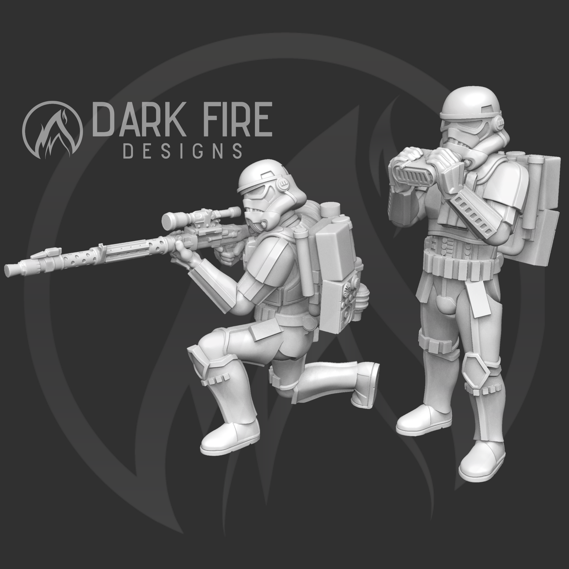 This kit will provide you with everything you need to build Imperial Desert Trooper sniper team. This kit includes parts to assemble two of your own fully modular desert troopers. (that can be combined with other Dark Fire Design kits). This file has been designed for Resin 3d Printers and include supported and standard STL files.