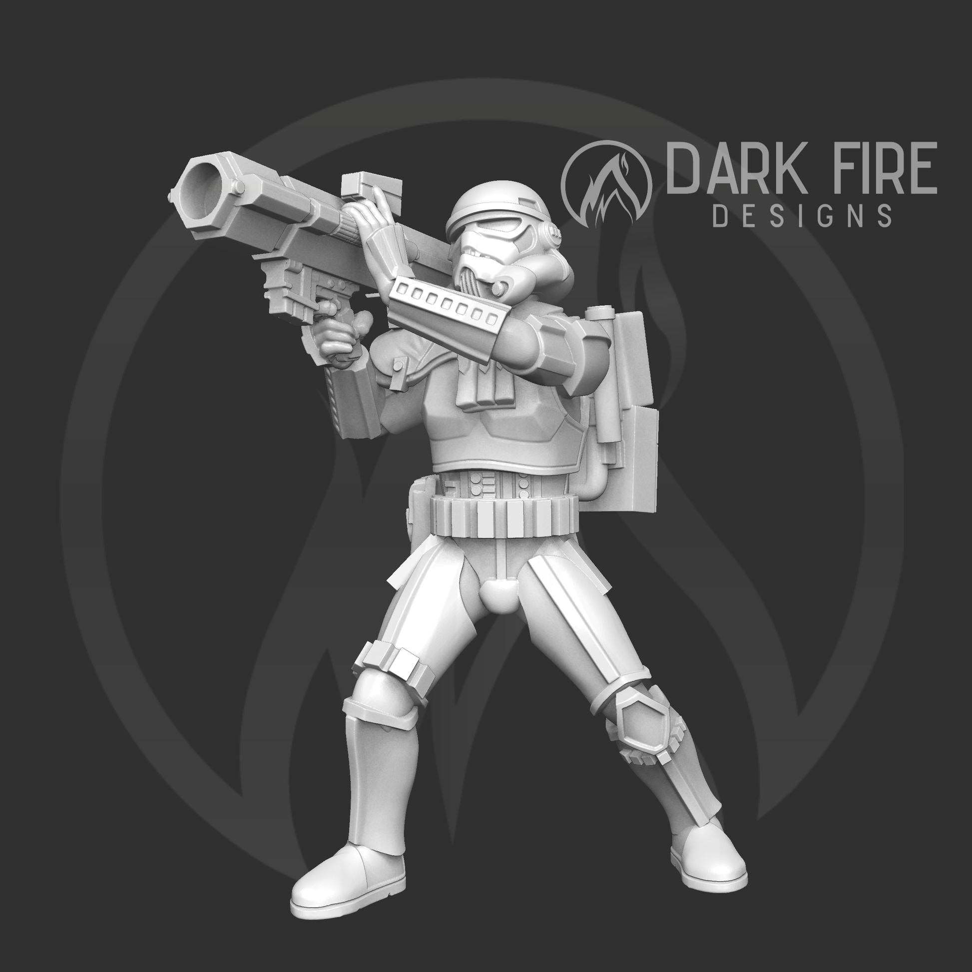 This kit will provide you with everything you need to build Imperial Desert Trooper rocket specialist. This kit includes parts to assemble a your own semi modular desert rocket troopers. (that can be combined with other Dark Fire Design kits). This file has been designed for Resin 3d Printers and include supported and standard STL files.