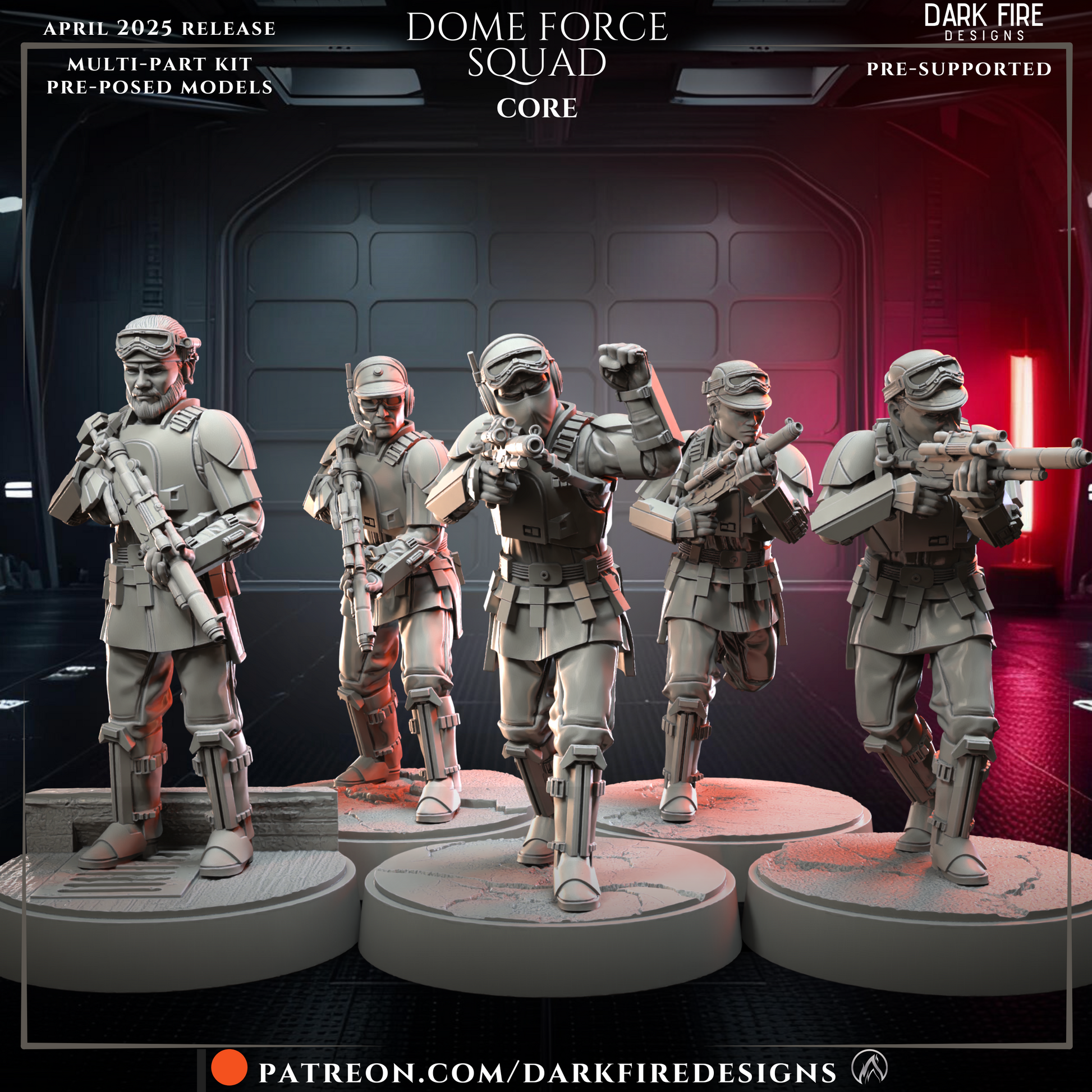 5 "core" miniatures are included, with parts options, plus 5 additional "kitbash" miniature options, with all having multiple options for head & chest gear.