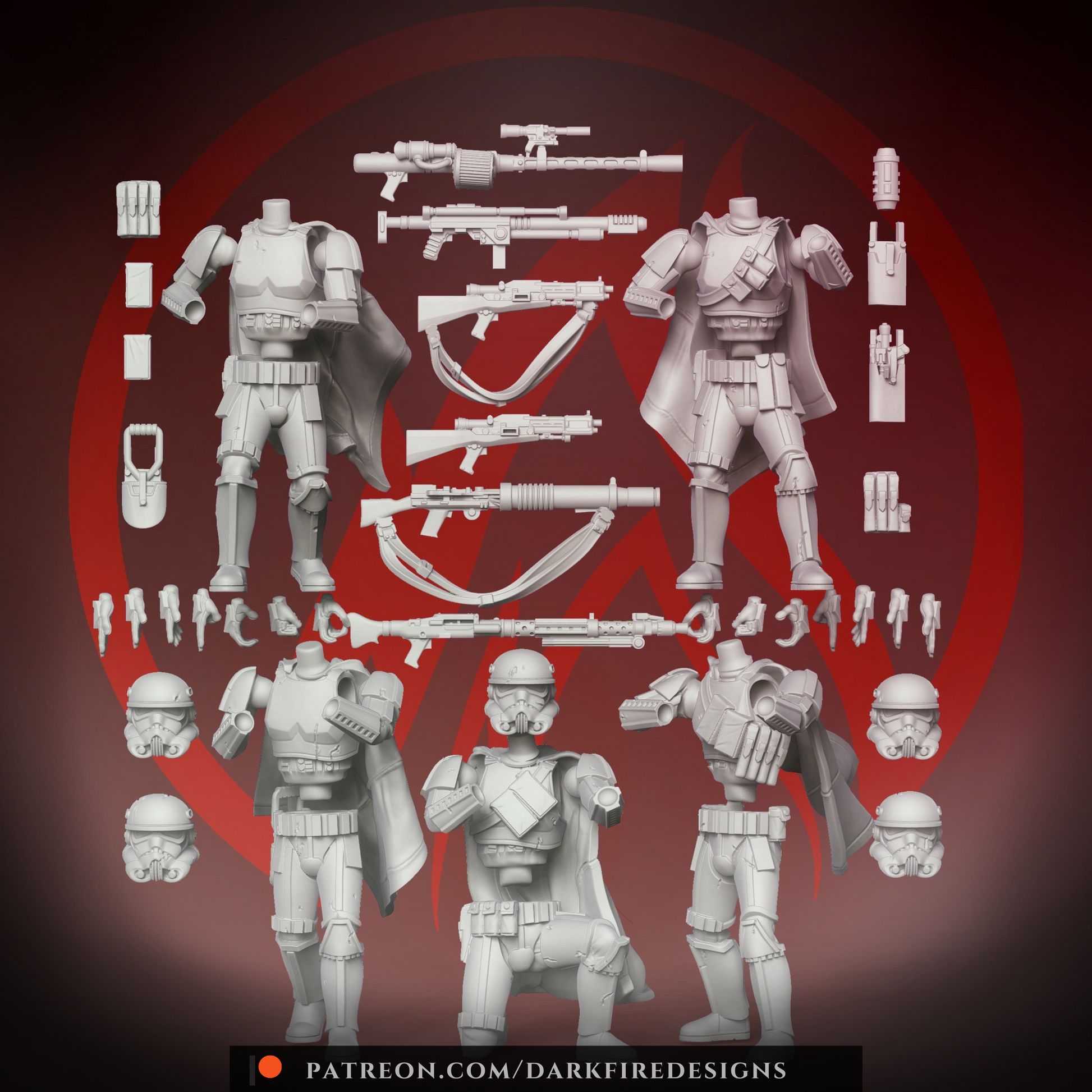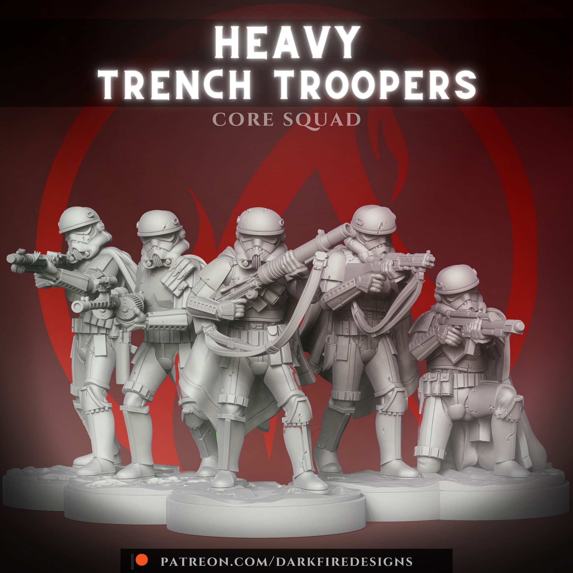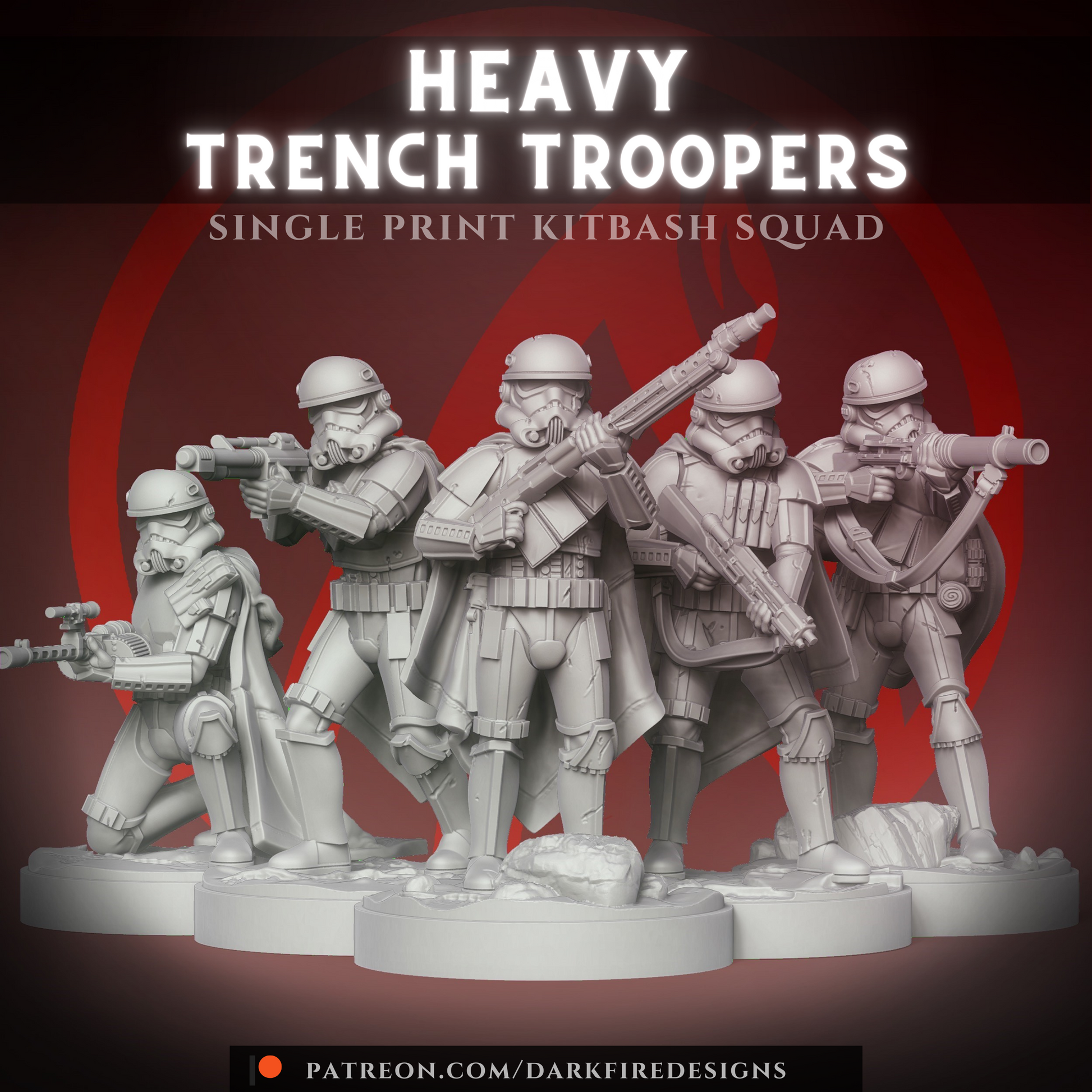 Bring out the big guns on your opponent next time you deploy your legion with these fully modular Imperial Heavy Trench Troopers. These models have been designed to easily print and paint to deploy them quickly onto any battlefield, and give you a wide range of customization options.