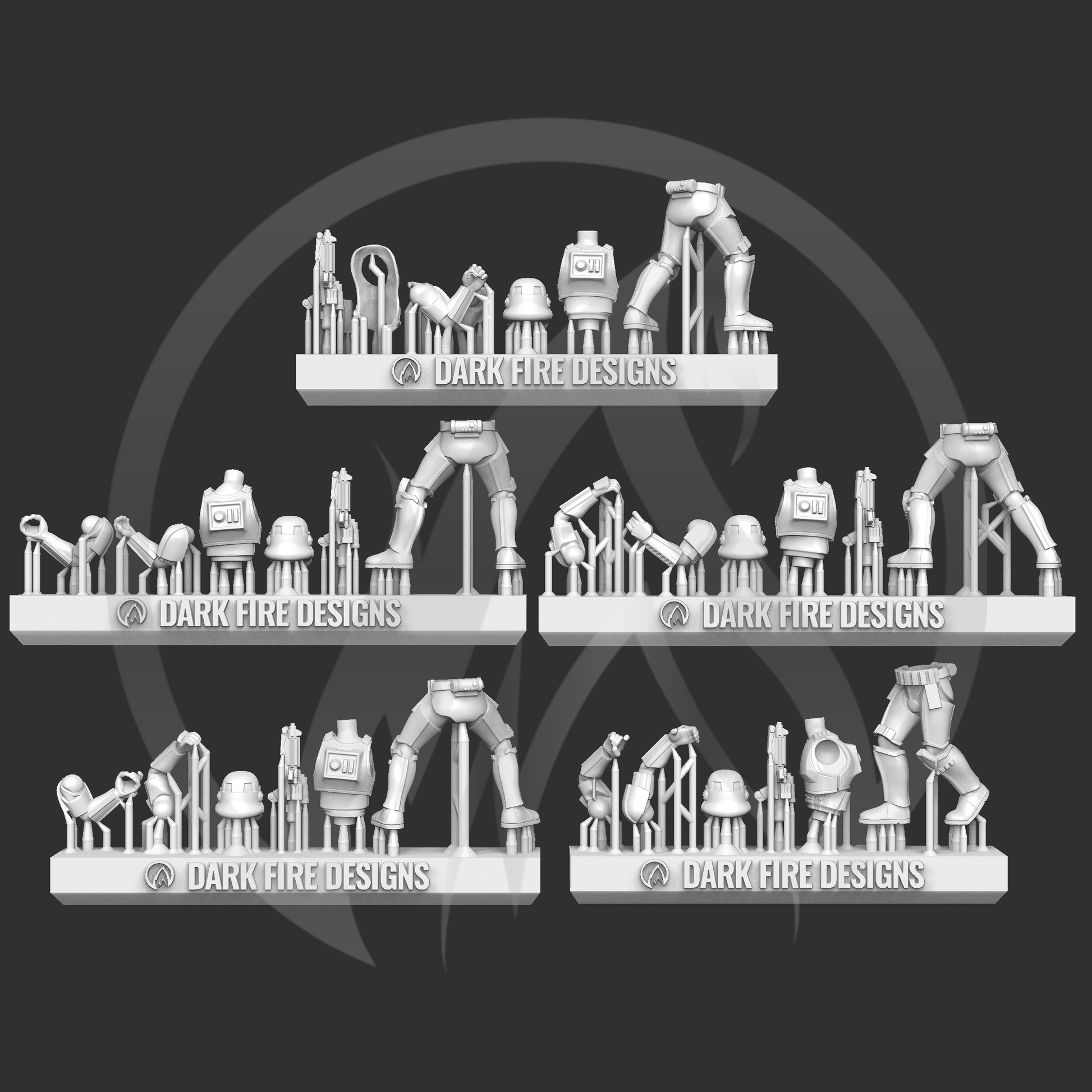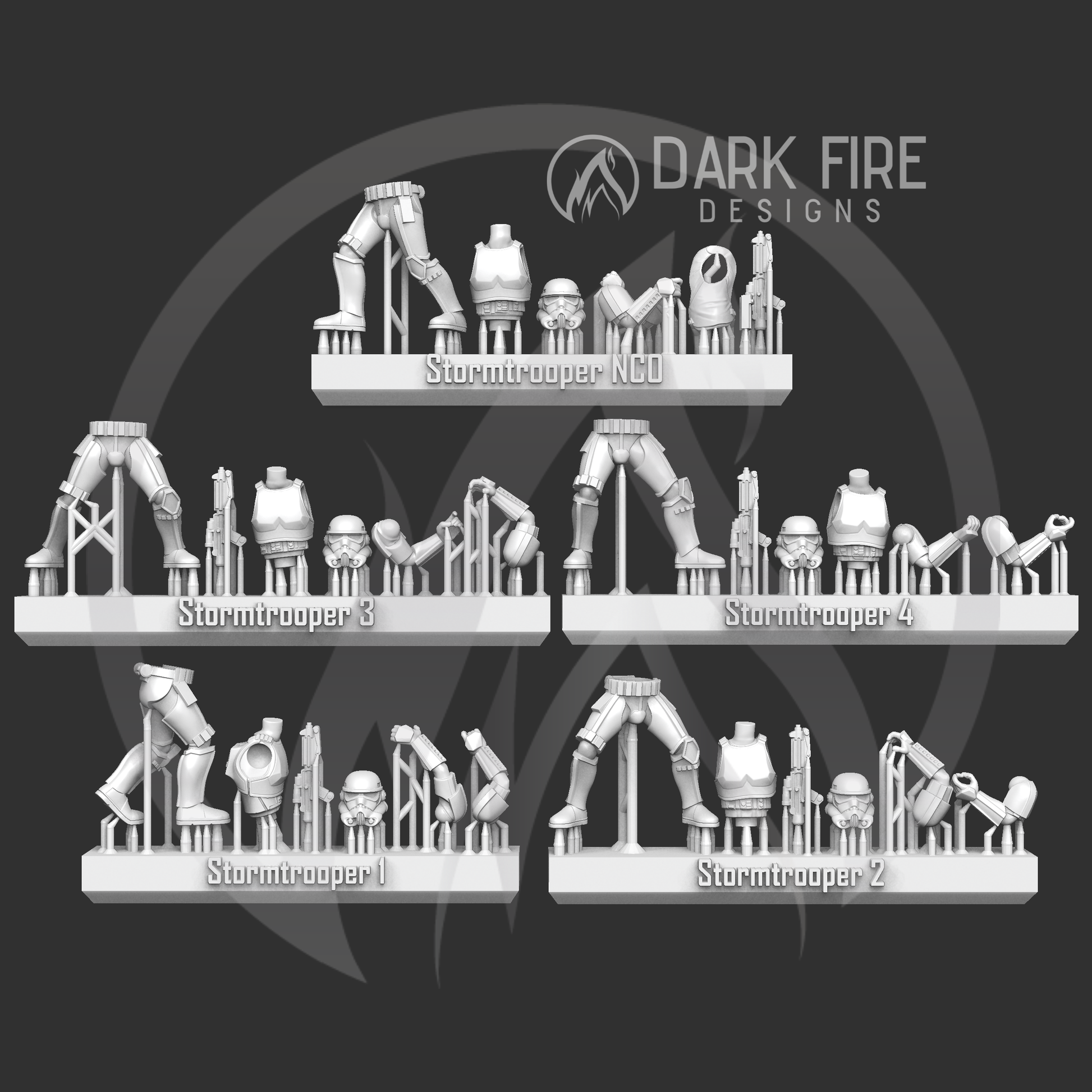 These 5 Imperial Trooper kits allow for a modular approach to customizing your glorious galactic army!