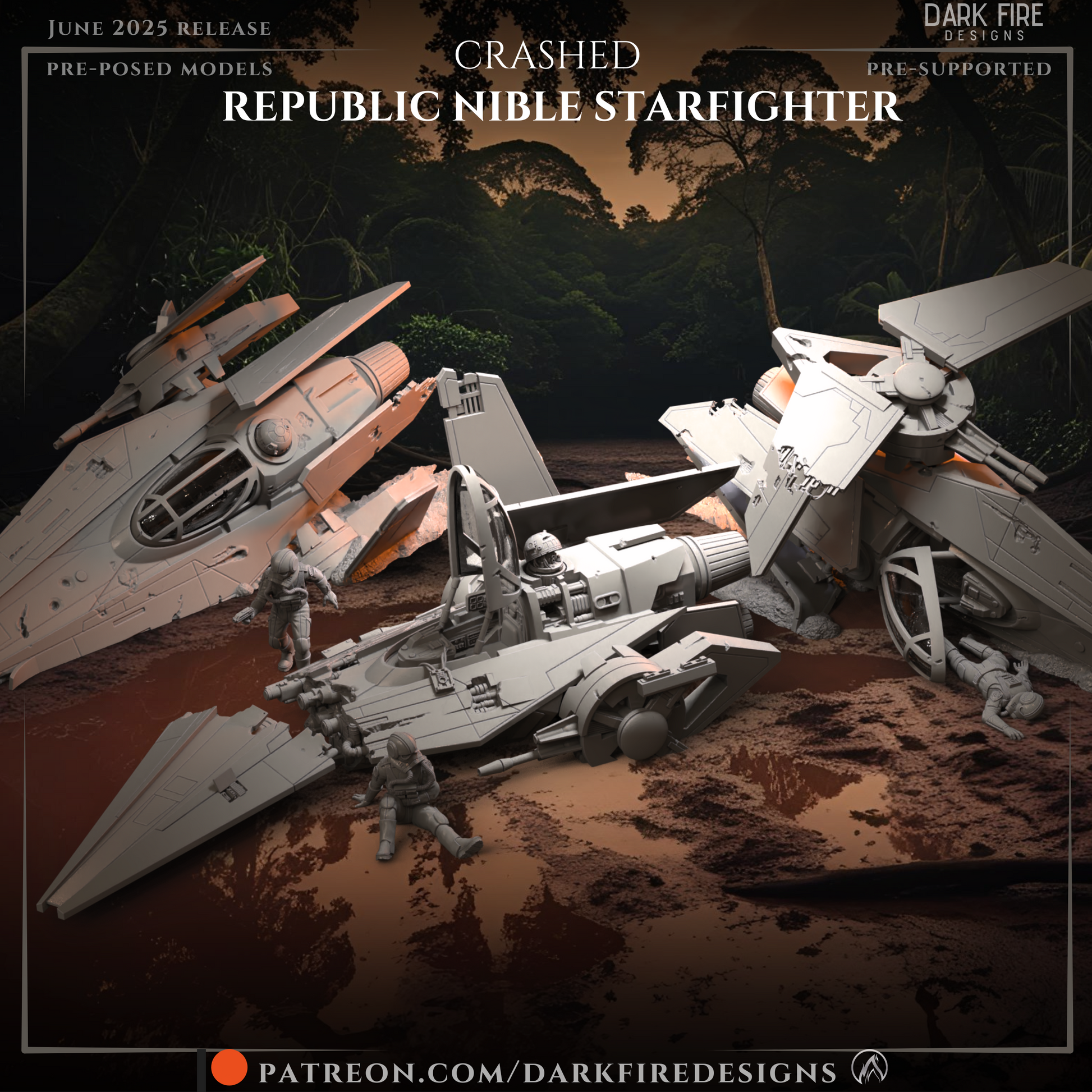 - Crashed Imperial Starfighters: 3 versions, with options for transparent and opaque canopies; 3 pilots "Fallen", "Wounded" & "Fighting"; and a beacon, perfect for scenery or objective use!