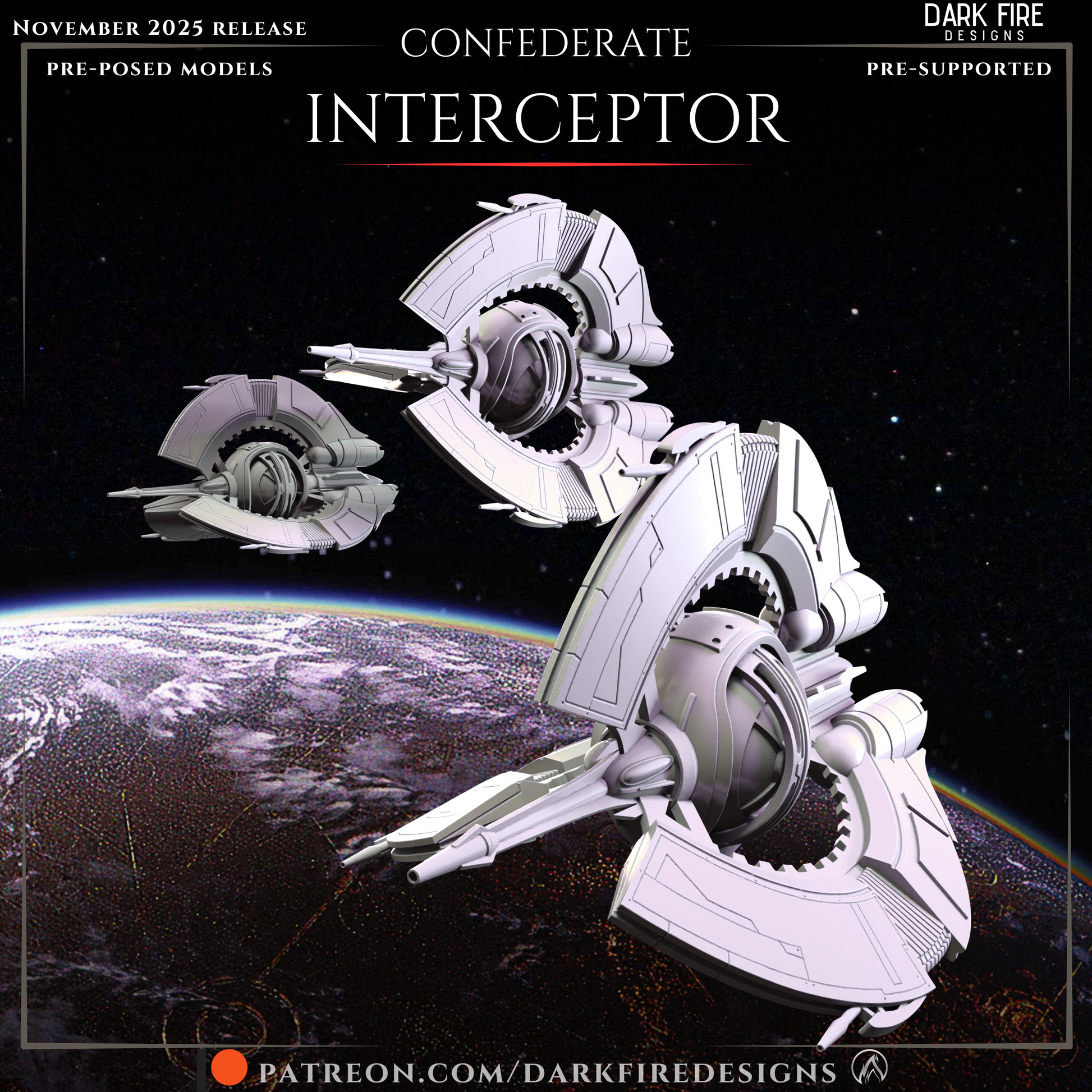 - Confederate Interceptor: Legion Scale vehicle with included Buzz Bots. Stands and Bases for both included.